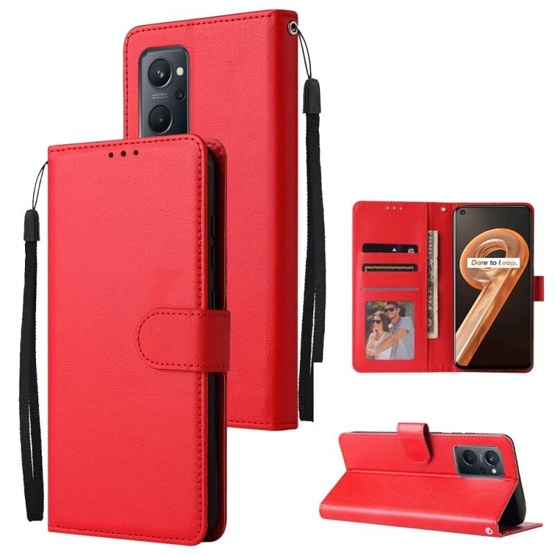 Για Realme 9i Πολυλειτουργική οριζόντια Flip δερμάτινη θήκη με τρεις υποδοχές για κάρτες (κόκκινο)