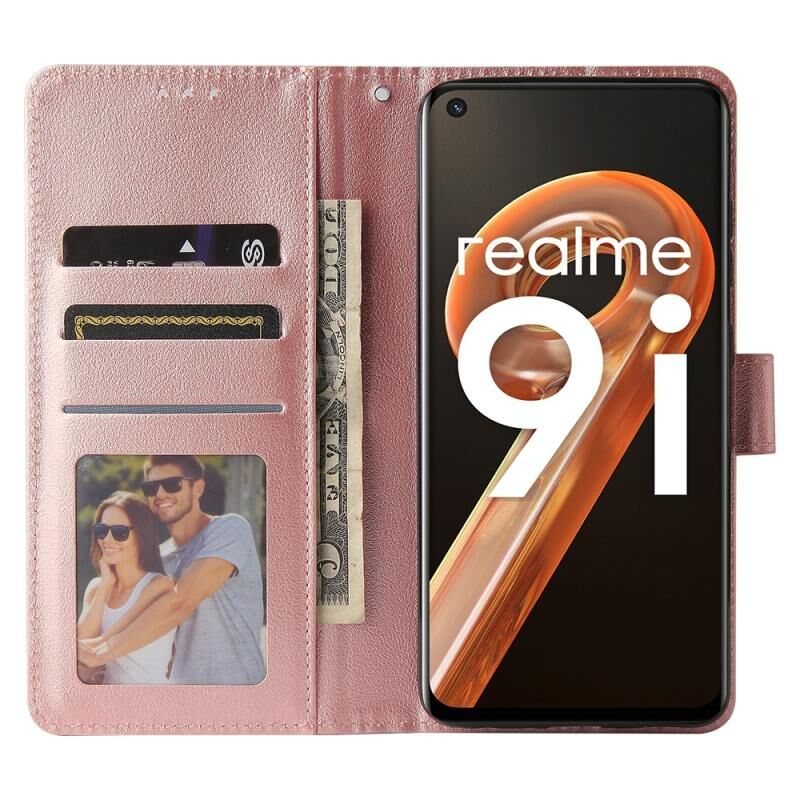 Για Realme 9i Πολυλειτουργική οριζόντια Flip δερμάτινη θήκη με τρεις υποδοχές για κάρτες (ροζ χρυσό)