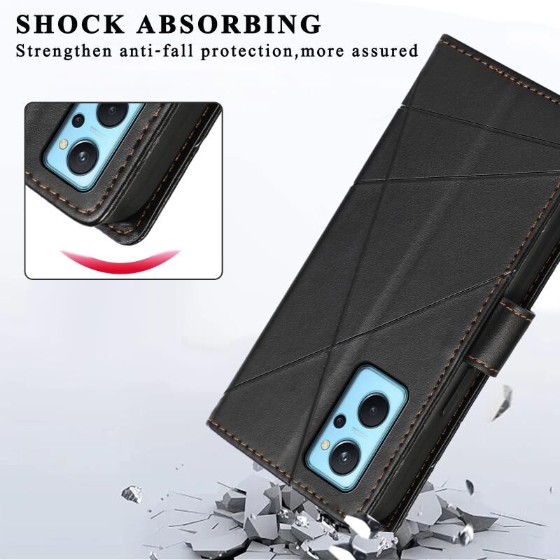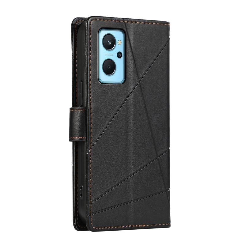 For Realme 9i PU Genuine Leather Texture Embossed Line Phone Case(Black)
