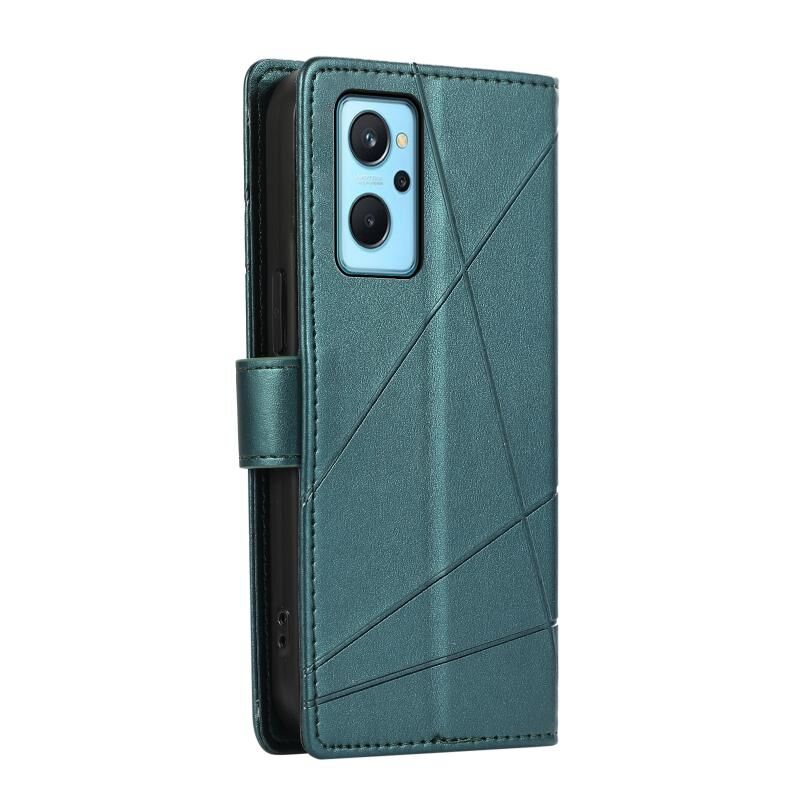 For Realme 9i PU Genuine Leather Texture Embossed Line Phone Case(Green)