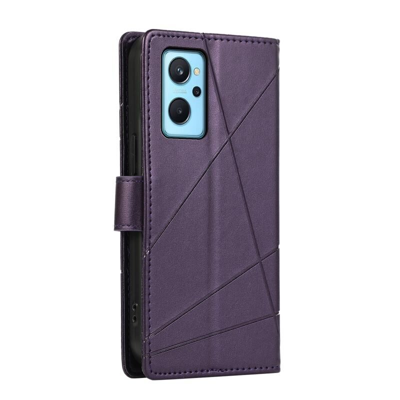 For Realme 9i PU Genuine Leather Texture Embossed Line Phone Case(Purple)