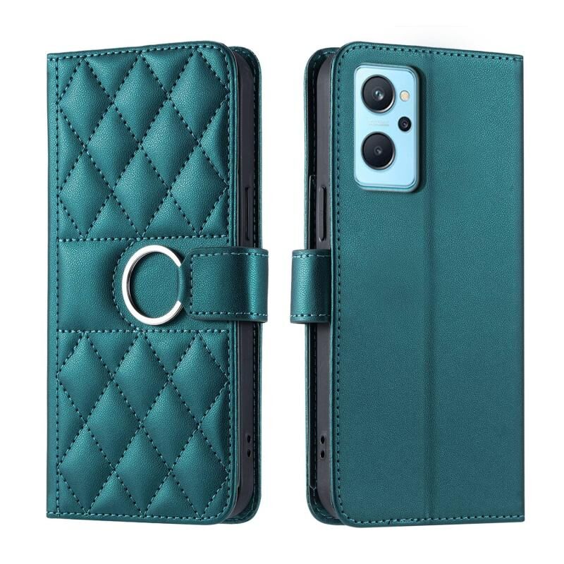 For Realme 9i Ring Buckle Rhombic Leather Phone Case(Green)