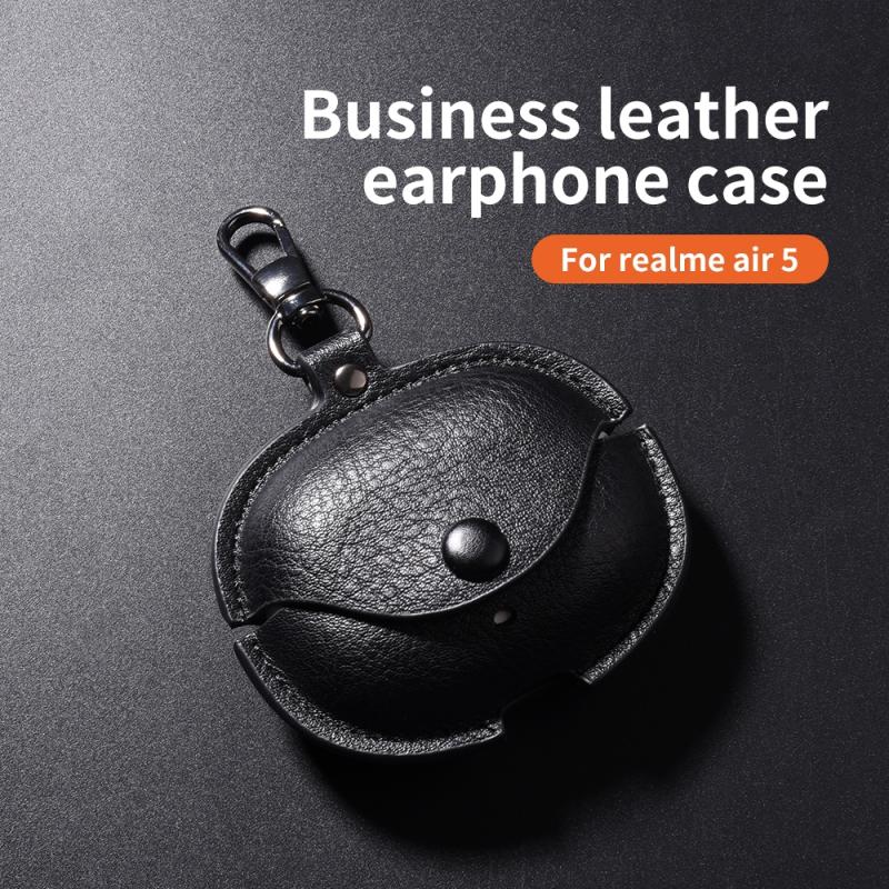 For Realme Buds Air 5 Pro Leather Earphone Protective Case with Hook(Black)