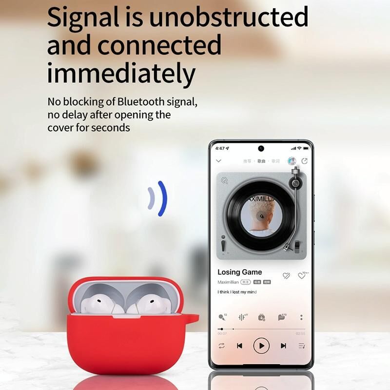 For Realme Buds T300 Wireless Earphone Shockproof Silicone Case with Hook(Grey)