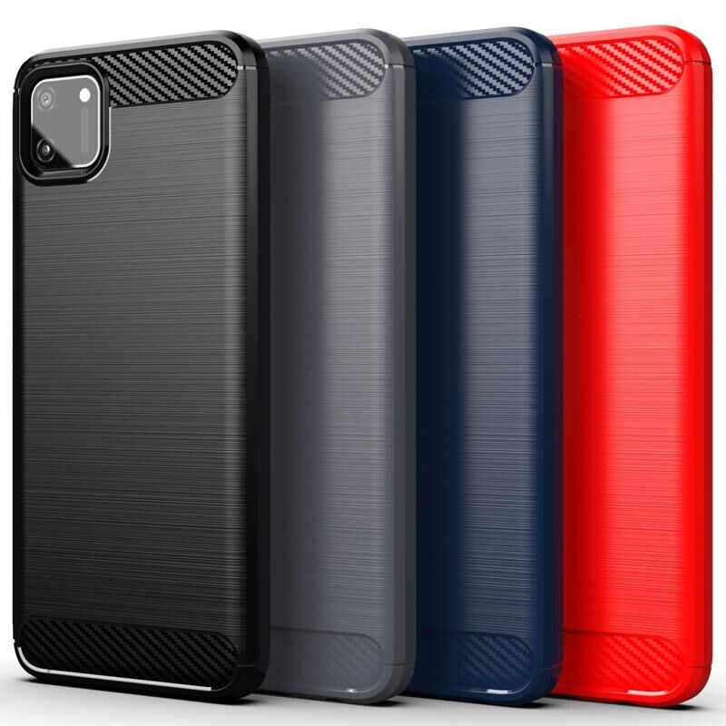 For Realme C11 Brushed Texture Carbon Fiber TPU Phone Case(Red)
