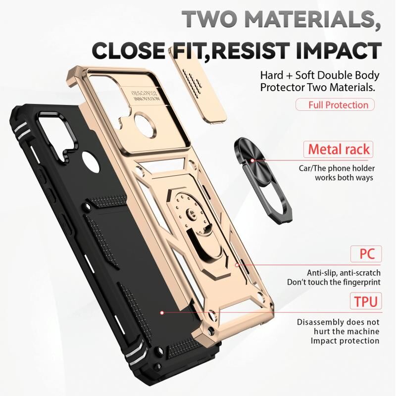 Για το Realme C11 / C12 / C15 Συρόμενη θήκη τηλεφώνου κάτοχος Camshield (χρυσό)