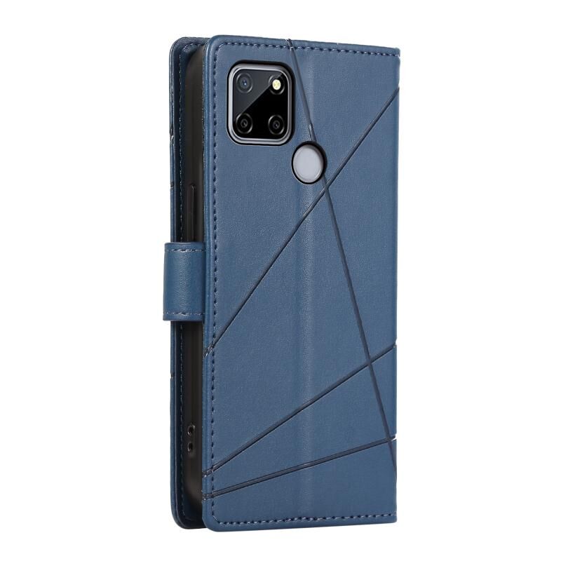 For Realme C12 PU Genuine Leather Texture Embossed Line Phone Case(Blue)