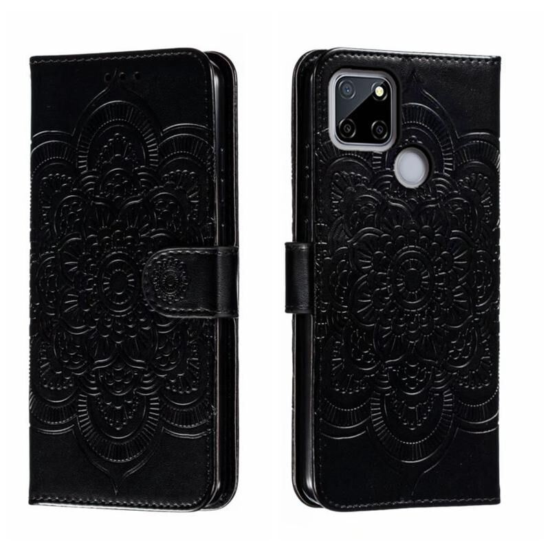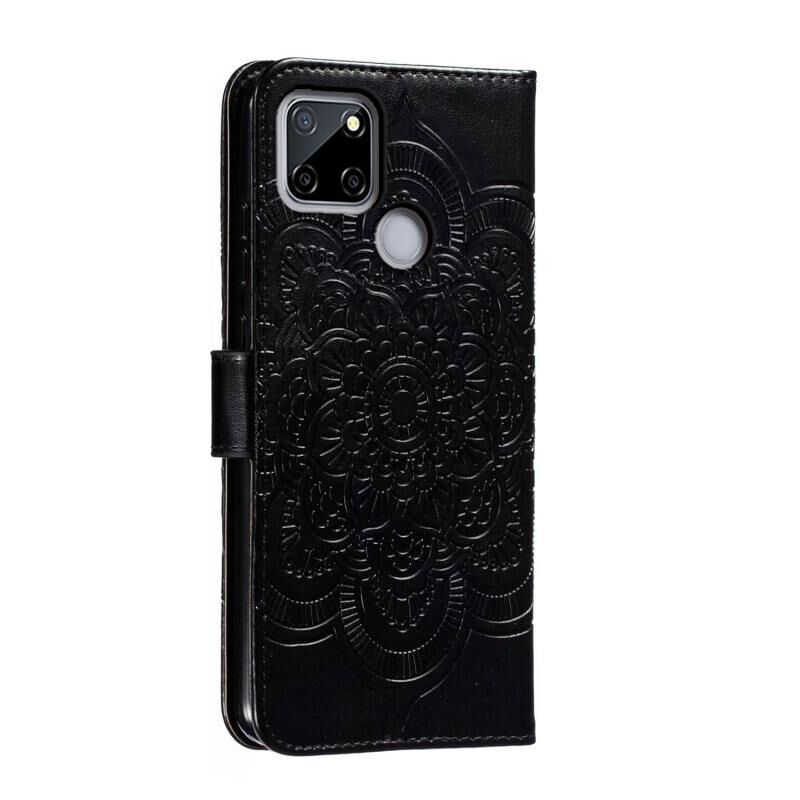 Για Realme C12 Sun Mandala ανάγλυφο μοτίβο τηλέφωνο δερμάτινη θήκη (μαύρο)