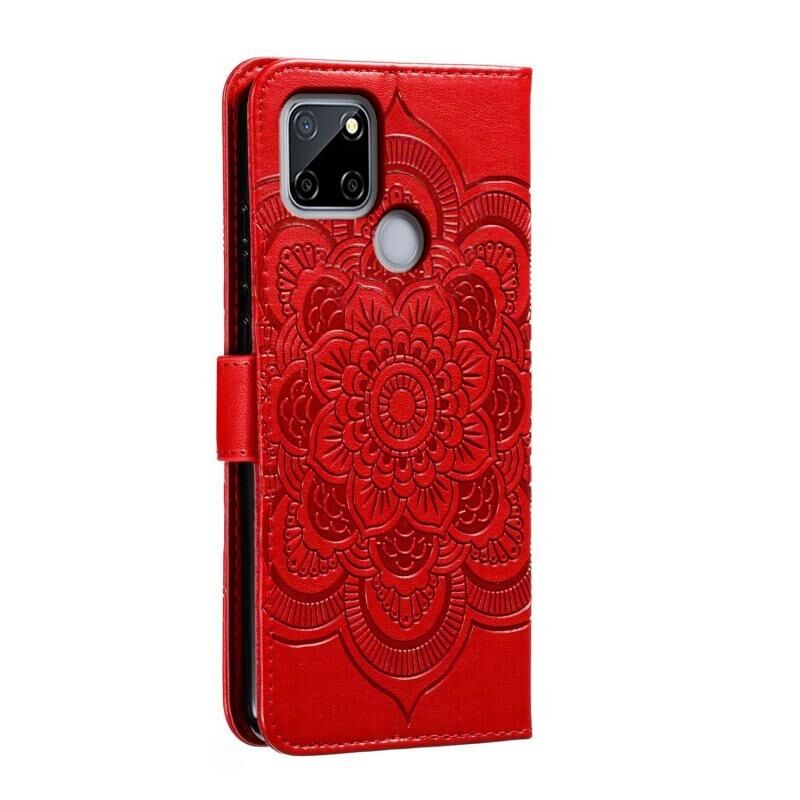 Για Realme C12 Sun Mandala ανάγλυφο μοτίβο τηλέφωνο δερμάτινη θήκη (κόκκινο)
