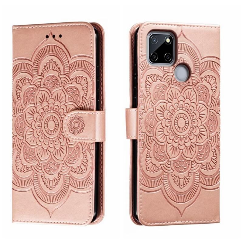 Για Realme C12 Sun Mandala ανάγλυφο μοτίβο τηλέφωνο δερμάτινη θήκη (Rose Gold)