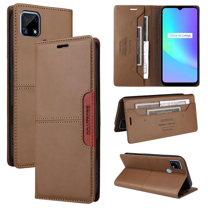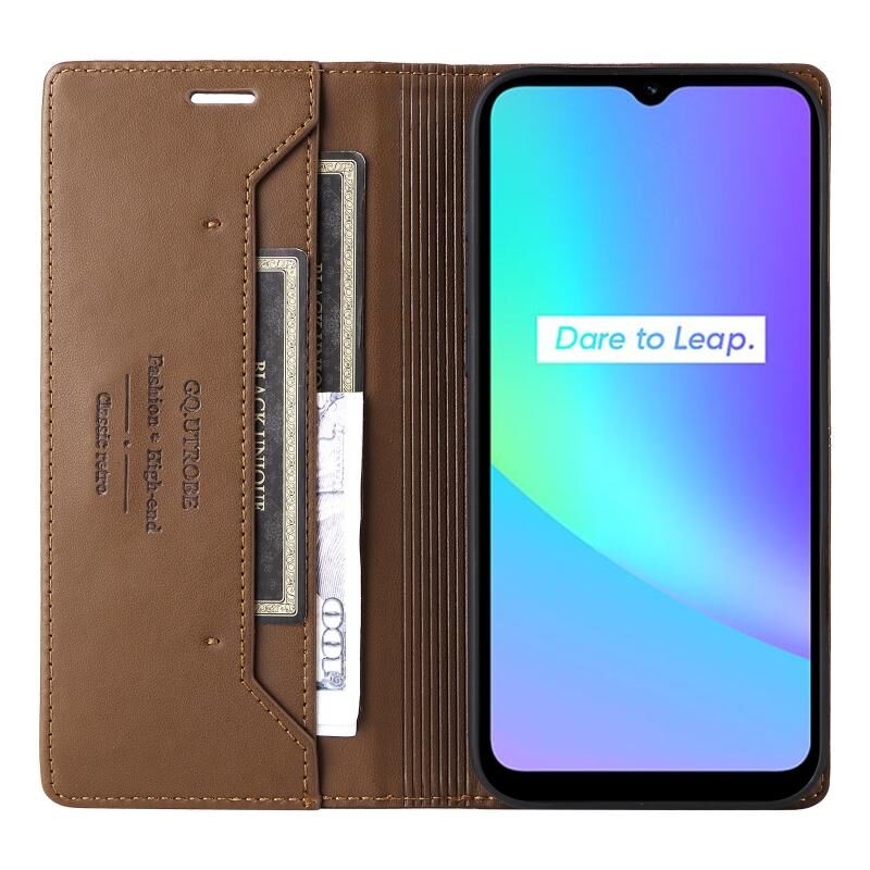 For Realme C15 GQUTROBE G01 RFID Anti-theft Leather Phone Case(Brown) (GQUTROBE)