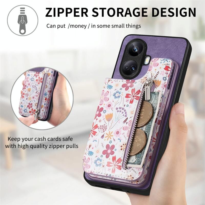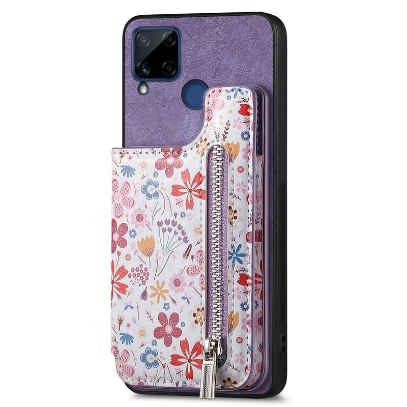 Για Realme C15 Ρετρό ζωγραφισμένο φερμουάρ πορτοφόλι πίσω υπόθεση τηλεφώνου (μωβ)