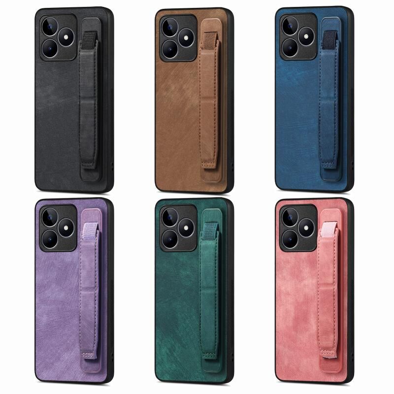 Θήκη τηλεφώνου Realme C15 Retro με λουράκι καρπού από δέρμα (Πράσινο)