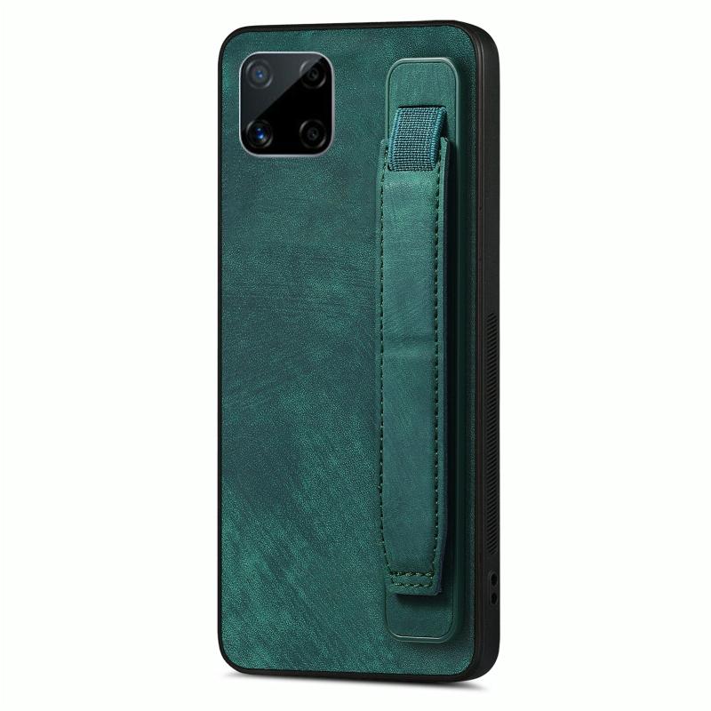 For Realme C15 Retro Wristband Holder Leather Back Phone Case(Green)