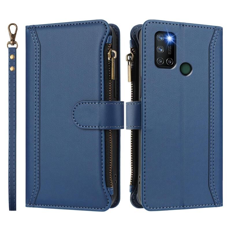 For Realme C17 / 7i Magnetic Closure 9 Card Slots Zipper Leather Case with Hand Strap(Dark Blue)