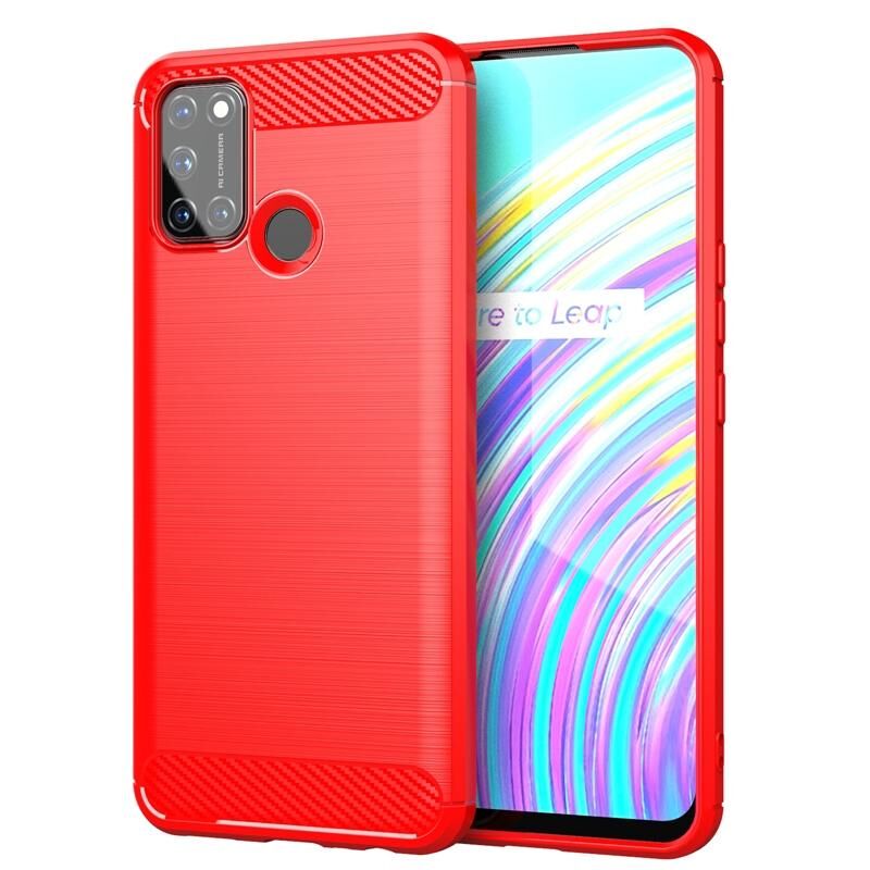 For Realme C17 Brushed Texture Carbon Fiber TPU Phone Case(Red)