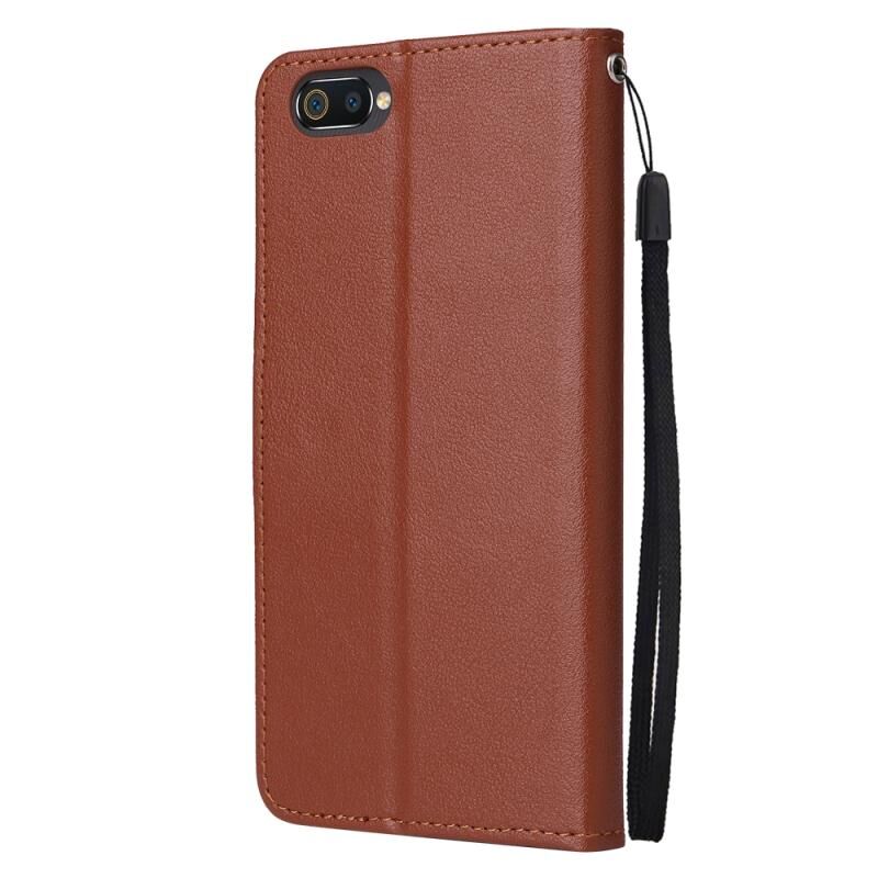 Για Realme C2 Πολυλειτουργική οριζόντια Flip δερμάτινη θήκη με τρεις υποδοχές για κάρτες (καφέ)