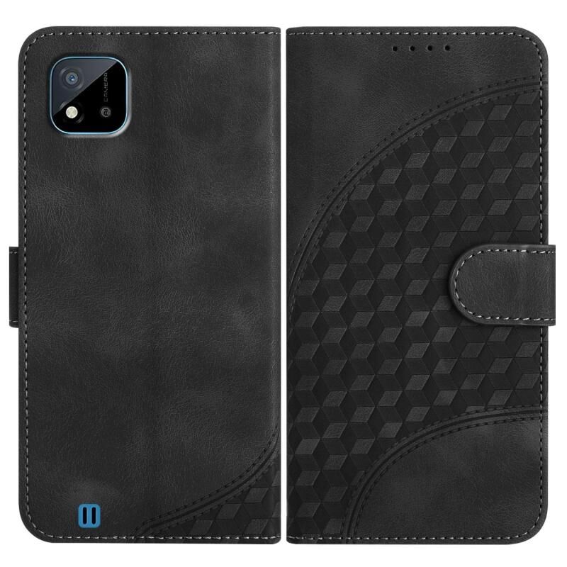For Realme C20 / C11 2021 / C21 Elephant Head Embossed Phone Leather Case with Lanyard(Black)