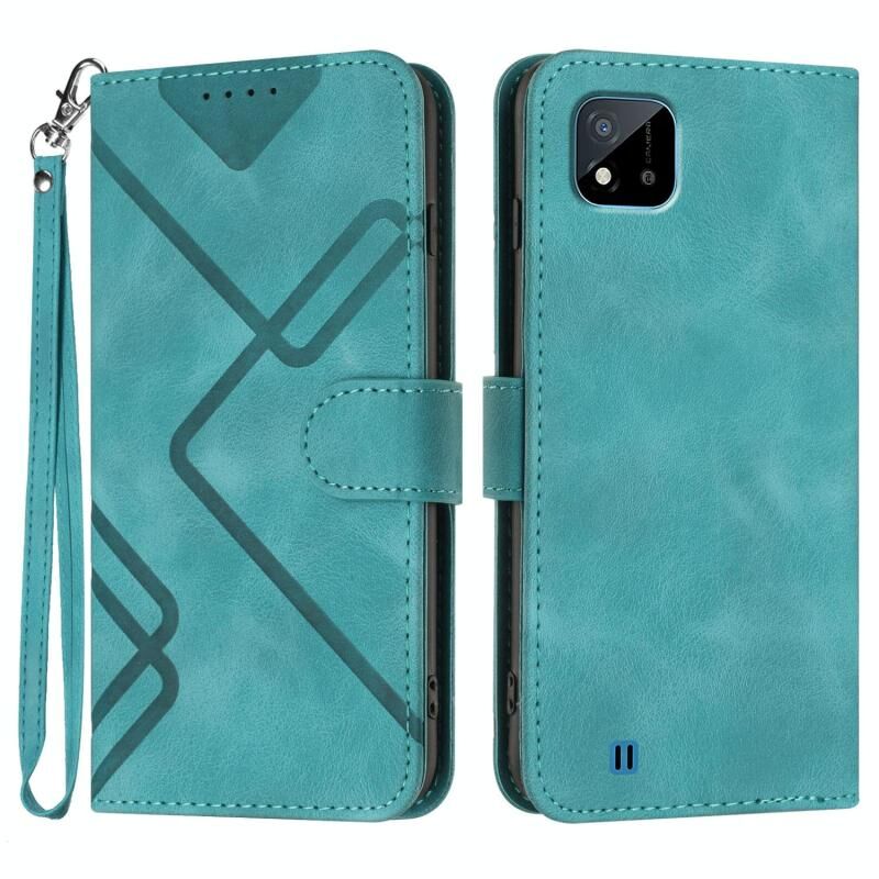 Για Realme C20 / C11 2021 / C21 Γραμμή μοτίβο δέρμα αίσθηση δέρμα τηλέφωνο υπόθεση (ανοιχτό μπλε)