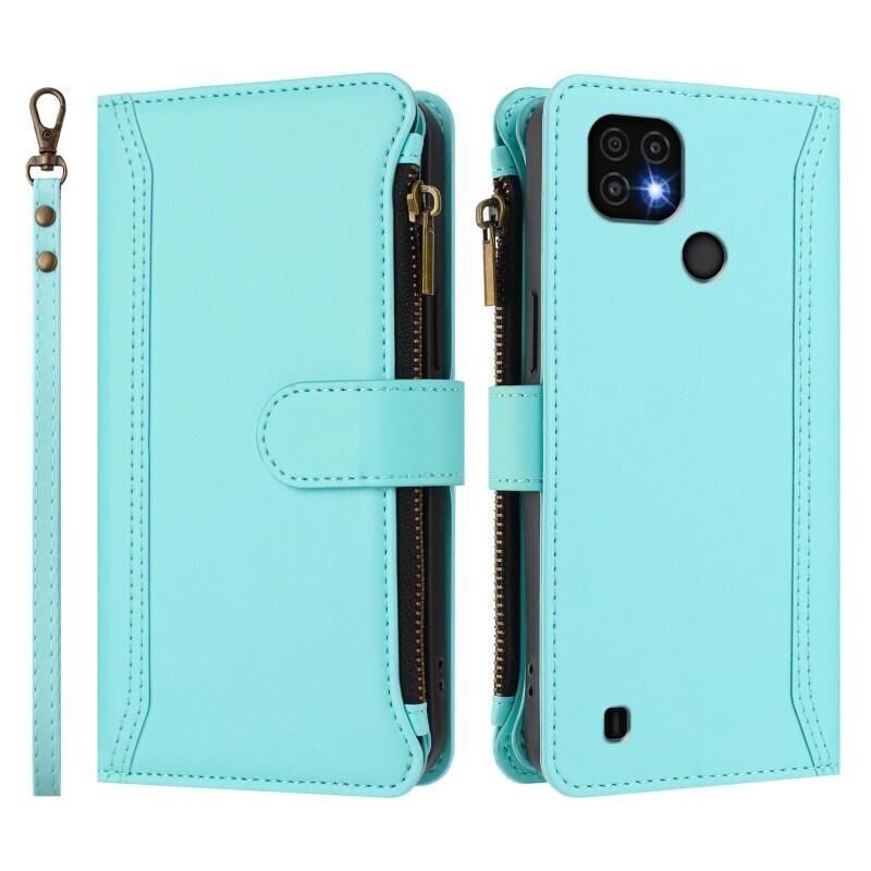 For Realme C20 / C11 2021 / C21 Magnetic Closure 9 Card Slots Zipper Leather Case with Hand Strap(Mint Green)