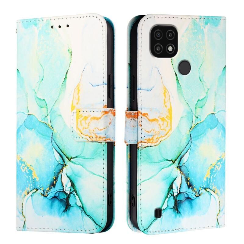 For Realme C20 / C11 2021 / C21 PT003 Marble Pattern Flip Leather Phone Case(Green)
