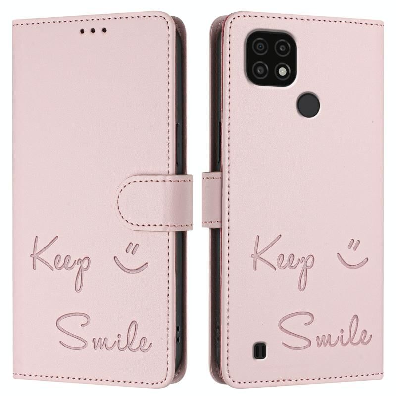 Για Realme C20 / C11 2021 / C21 Smile ανάγλυφο RFID δερμάτινη θήκη τηλεφώνου (ροζ)