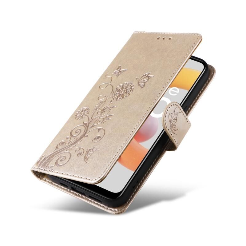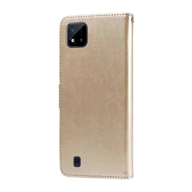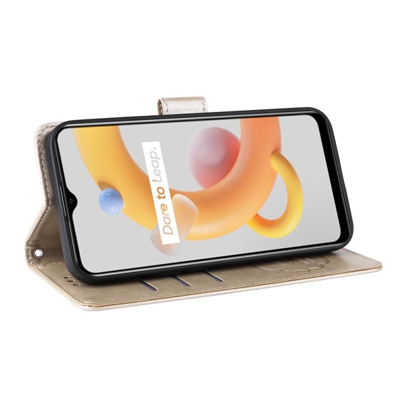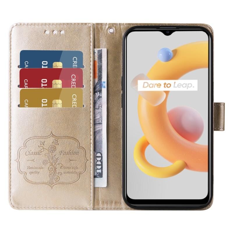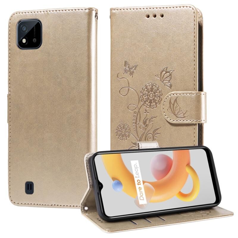 For Realme C20 / C20A / C21 / C11 2021 Embossed Butterfly Flowers Leather Phone Case(Gold)