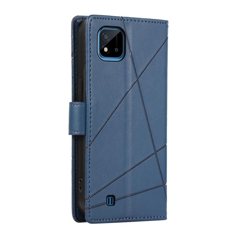 For Realme C20 PU Genuine Leather Texture Embossed Line Phone Case(Blue)