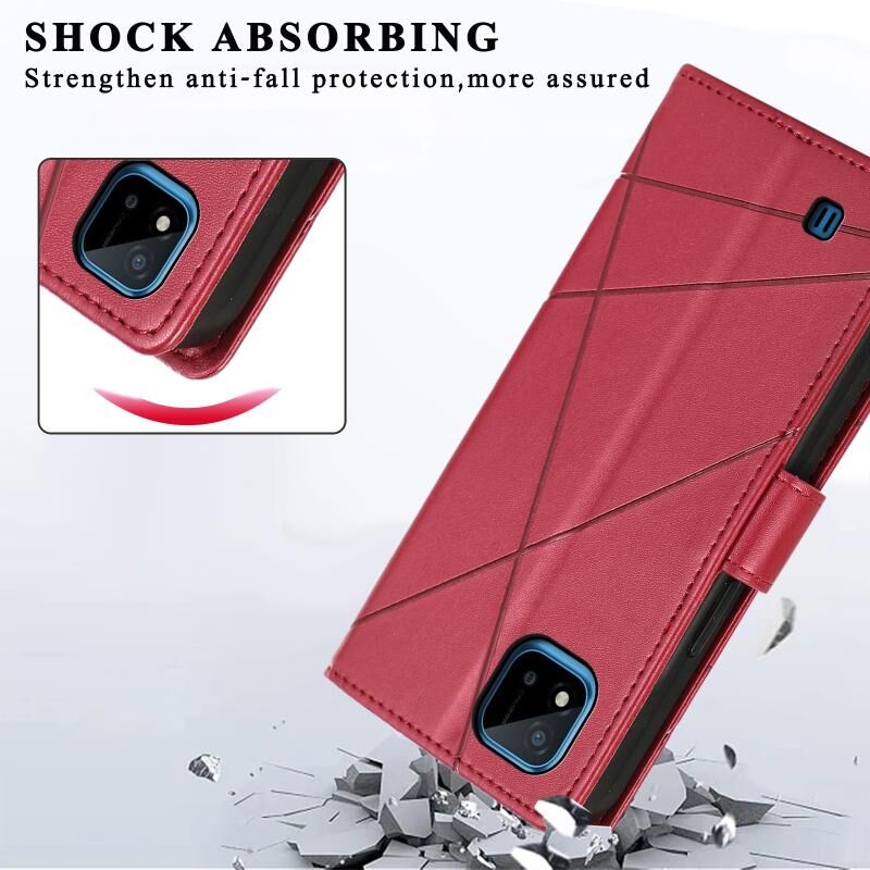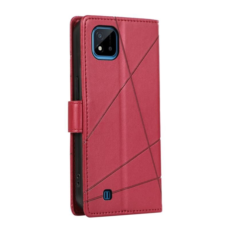 For Realme C20 PU Genuine Leather Texture Embossed Line Phone Case(Red)