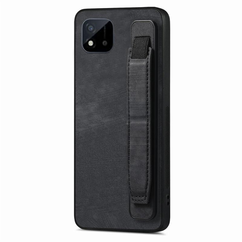 For Realme C20 Retro Wristband Holder Leather Back Phone Case(Black)
