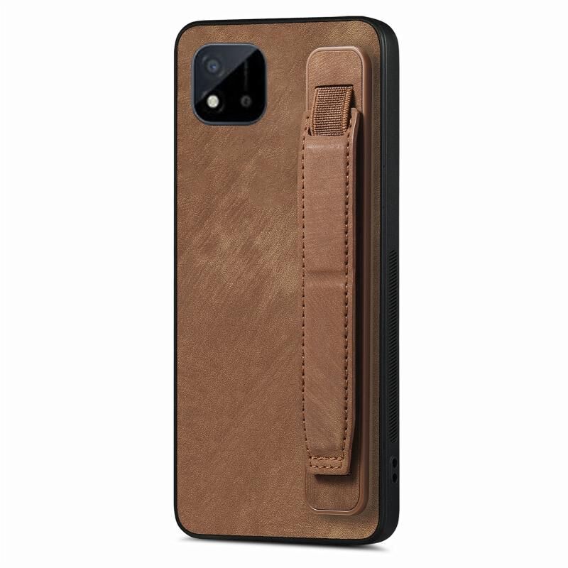 For Realme C20 Retro Wristband Holder Leather Back Phone Case(Brown)