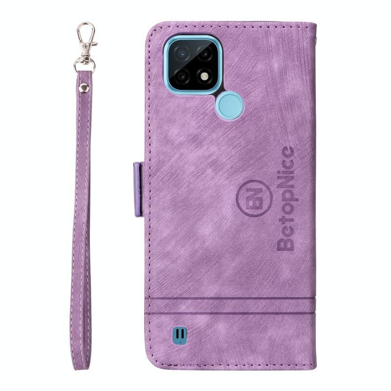 Για το Realme C21 BETOPNICE Διπλής όψης δερμάτινη θήκη τηλεφώνου με αγκράφα (μωβ) (BETOPNICE)
