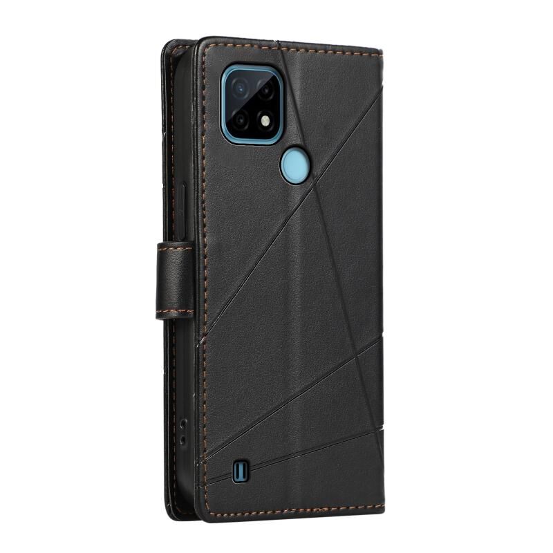 For Realme C21 PU Genuine Leather Texture Embossed Line Phone Case(Black)