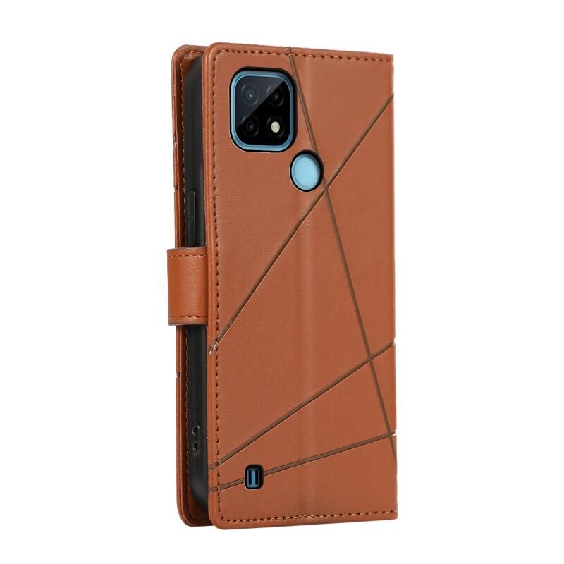 For Realme C21 PU Genuine Leather Texture Embossed Line Phone Case(Brown)