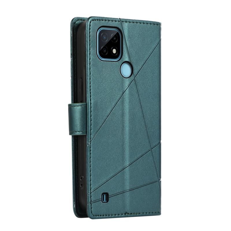 For Realme C21 PU Genuine Leather Texture Embossed Line Phone Case(Green)