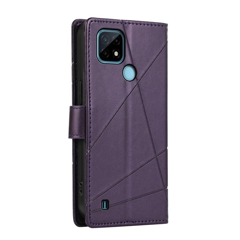 For Realme C21 PU Genuine Leather Texture Embossed Line Phone Case(Purple)