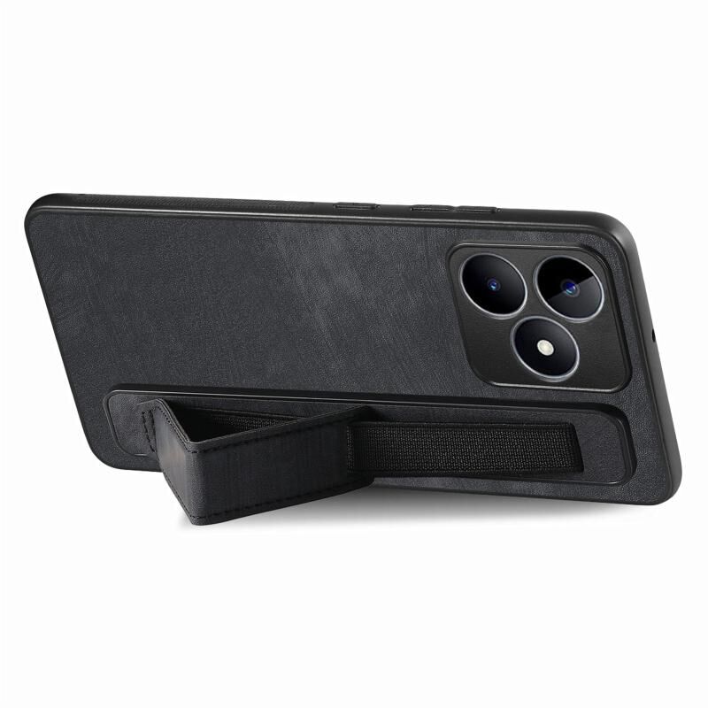 For Realme C21 Retro Wristband Holder Leather Back Phone Case(Black)