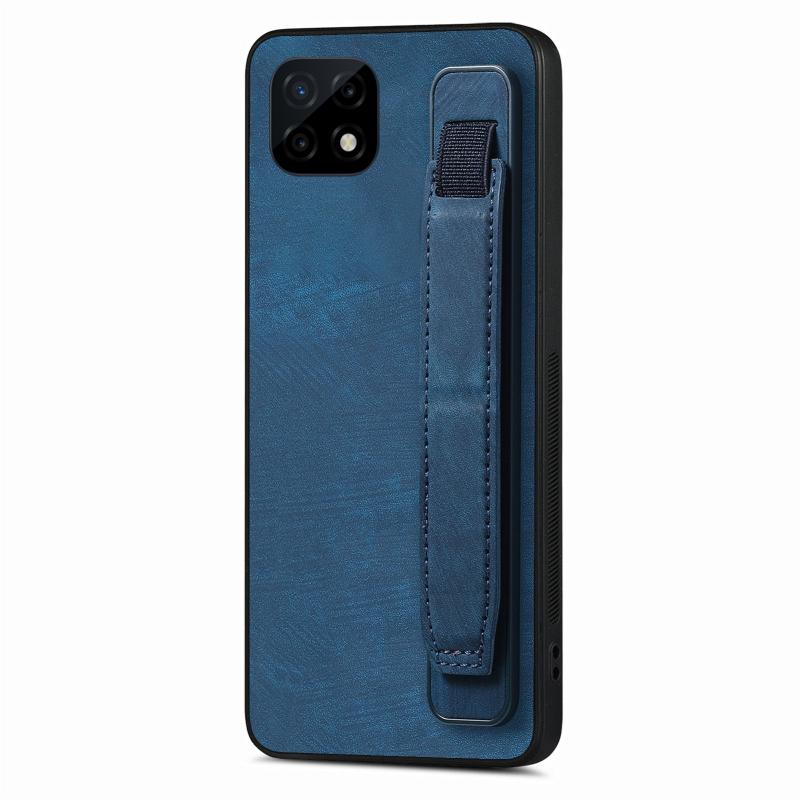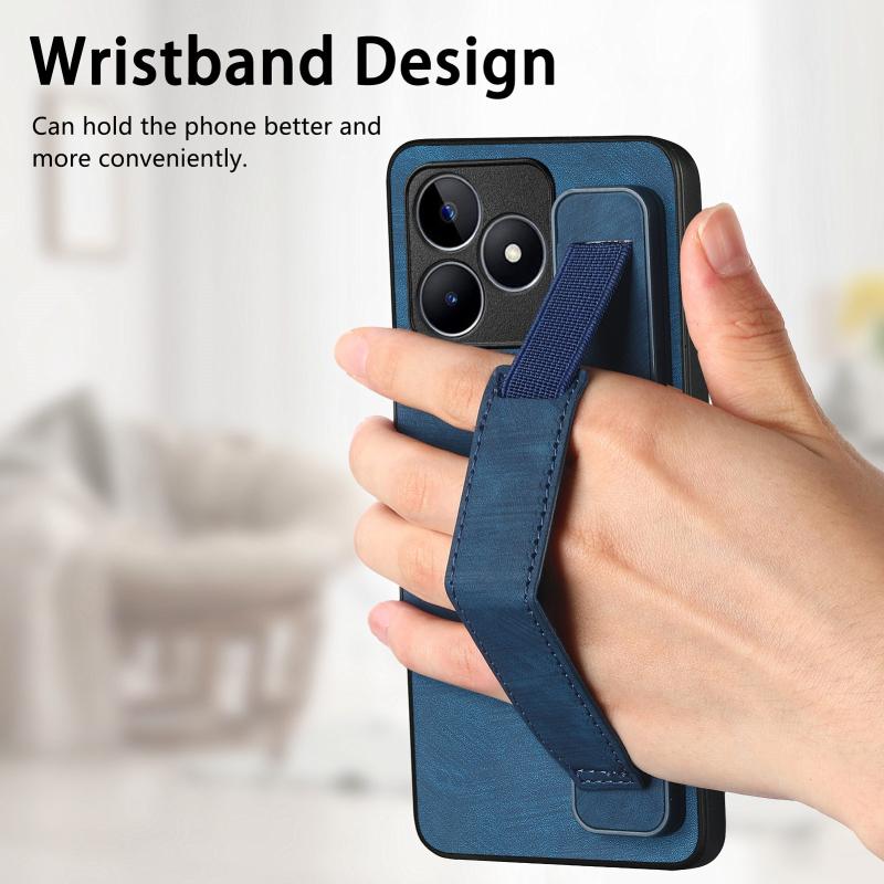 For Realme C21 Retro Wristband Holder Leather Back Phone Case(Blue)