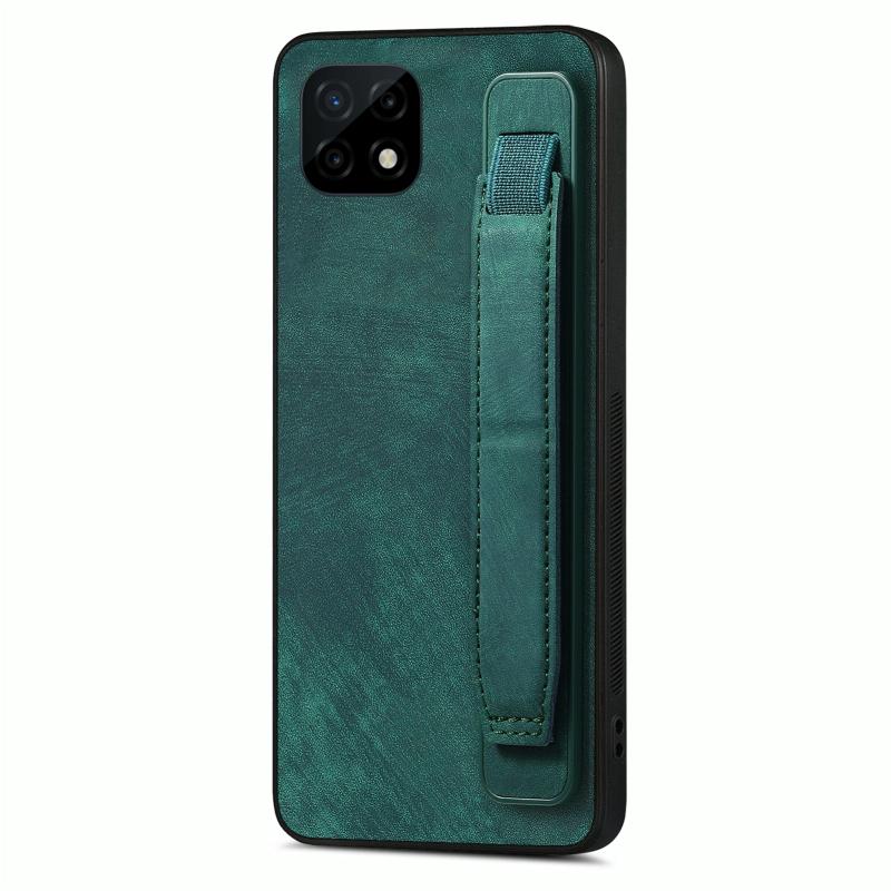 For Realme C21 Retro Wristband Holder Leather Back Phone Case(Green)