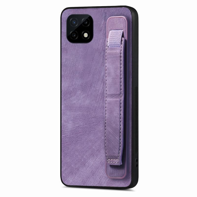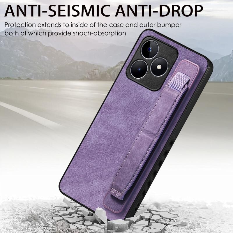 For Realme C21 Retro Wristband Holder Leather Back Phone Case(Purple)