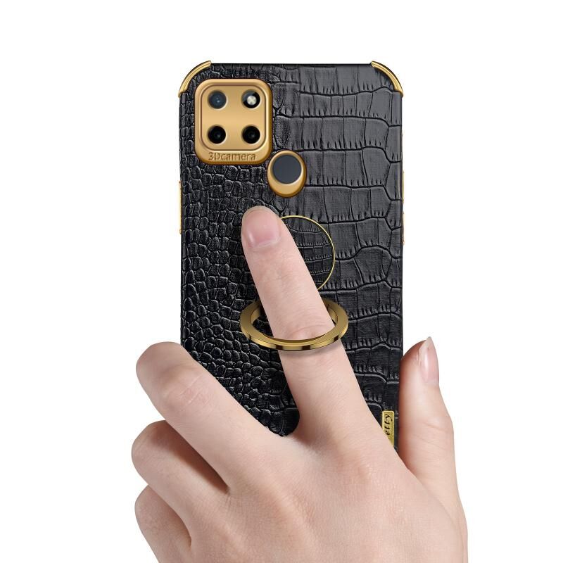 Θήκη τηλεφώνου για Realme C21Y 6D με ηλεκτρολυτική επίστρωση, υφή κροκόδειλου με βάση στήριξης (Λευκό)
