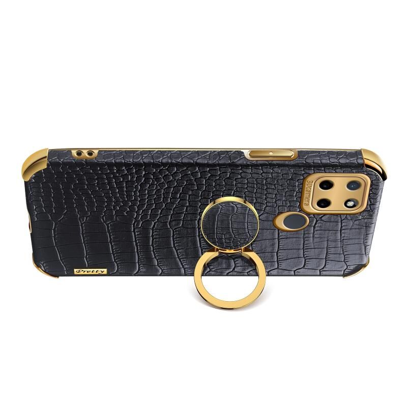 Θήκη τηλεφώνου για Realme C21Y 6D με ηλεκτρολυτική επίστρωση, υφή κροκόδειλου με βάση στήριξης (Λευκό)