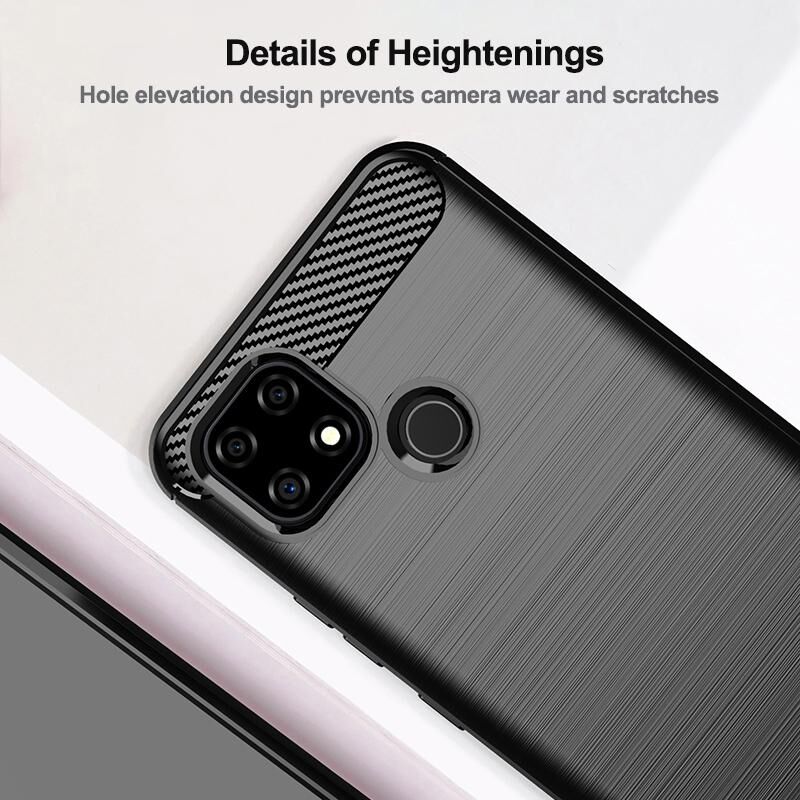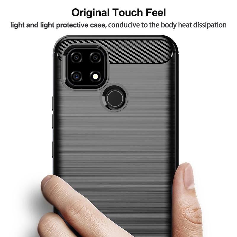 For Realme C21Y Brushed Texture Carbon Fiber TPU Phone Case(Blue)