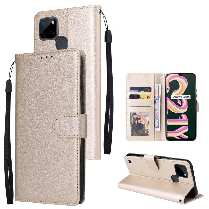 Για Realme C21Y / C25Y Πολυλειτουργική οριζόντια Flip δερμάτινη θήκη με τρεις υποδοχές για κάρτες (χρυσό)