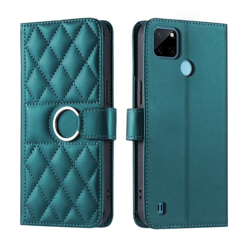For Realme C21Y / C25Y Ring Buckle Rhombic Leather Phone Case(Green)