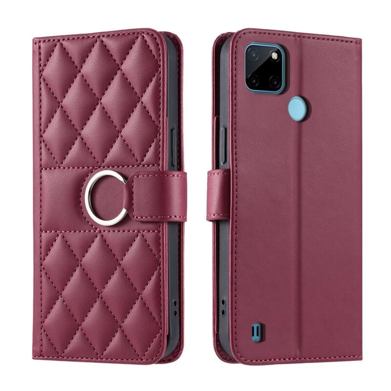 For Realme C21Y / C25Y Ring Buckle Rhombic Leather Phone Case(Red)