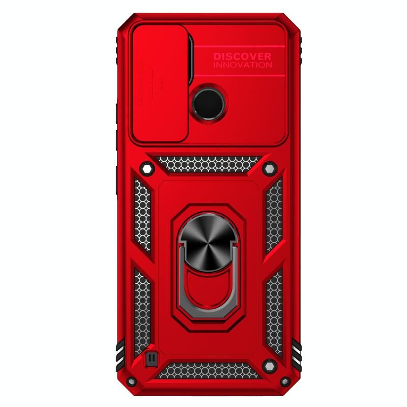 Για το Realme C21Y / C25Y Συρόμενη θήκη τηλεφώνου με κάτοχο ασπίδας κάμερας (κόκκινο)