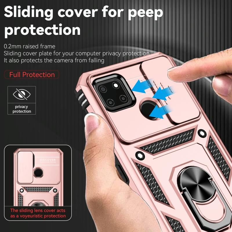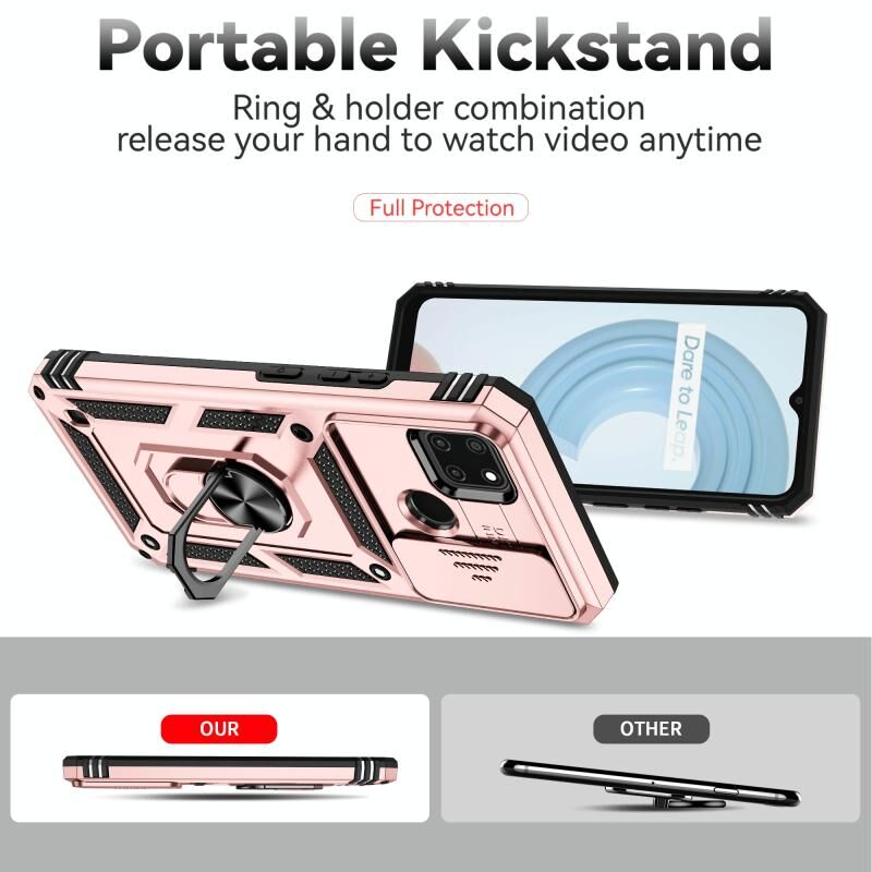Για το Realme C21Y / C25Y Συρόμενη θήκη τηλεφώνου κάτοχος Camshield (ροζ χρυσό)