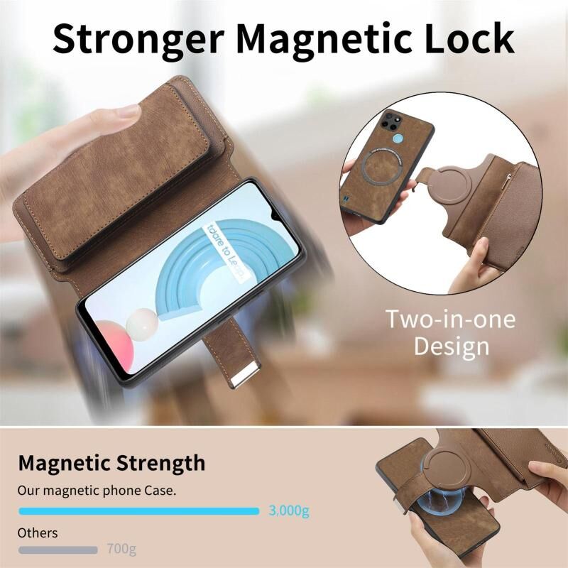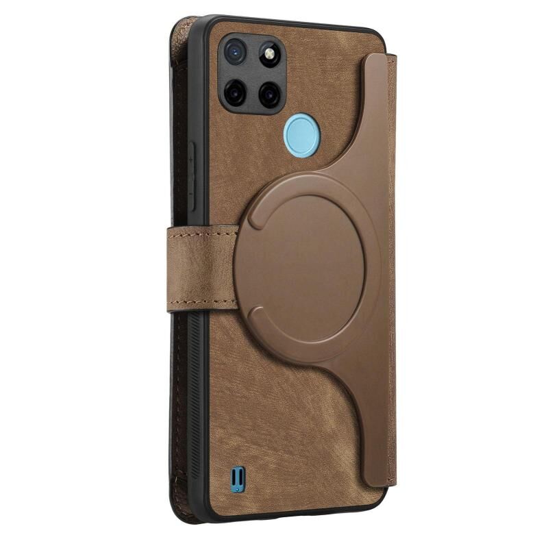 For Realme C21Y CaseNeo MagSafe RFID Anti-theft Zipper Wallet Retro Leather Phone Case(Brown) (CaseNeo)