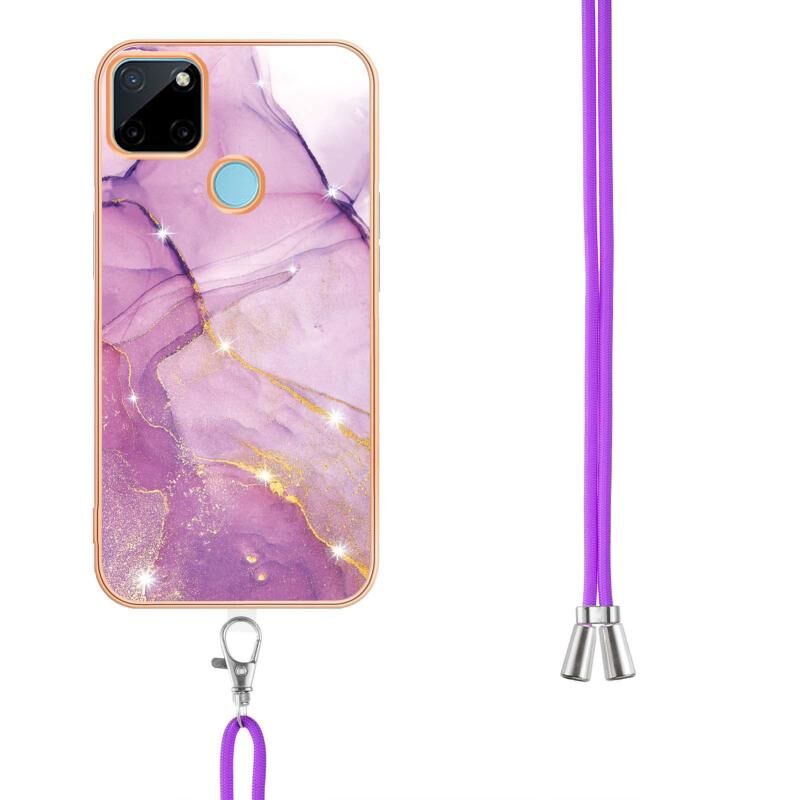 Θήκη τηλεφώνου Realme C21Y Electroplating Marble IMD TPU με κορδόνι (Μωβ 001)